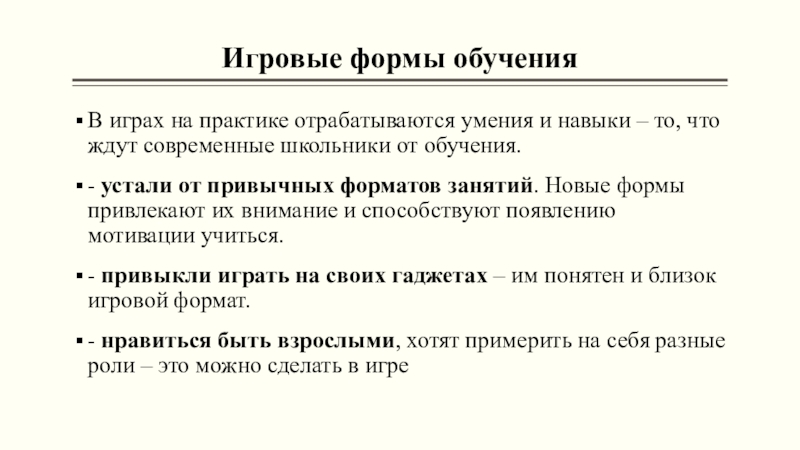 - устали от привычных форматов занятий. Новые формы привлекают их внимание и способствуют появлению мотивации учиться.