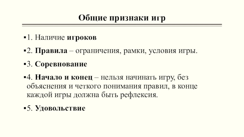 4. Начало и конец – нельзя начинать игру, без объяснения и четкого понимания правил, в конце каждой игры должна быть рефлексия.