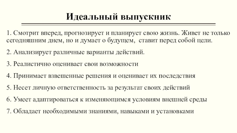 1. Смотрит вперед, прогнозирует и планирует свою жизнь. Живет не