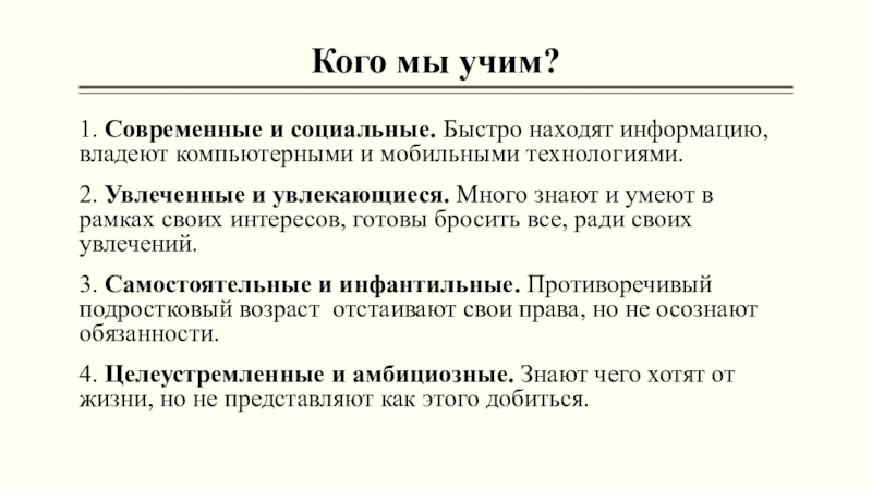 1. Современные и социальные. Быстро находят информацию, владеют компьютерными