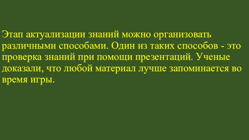 Презентация, доклад на тему АКТУАЛИЗАЦИЯ ЗНАНИЙ – как этап современного урока в условиях ФГОС