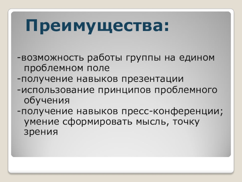 При этом акцент делается не на получение готовых знаний, а на их выработку, на сотворчество учителя и ученика!