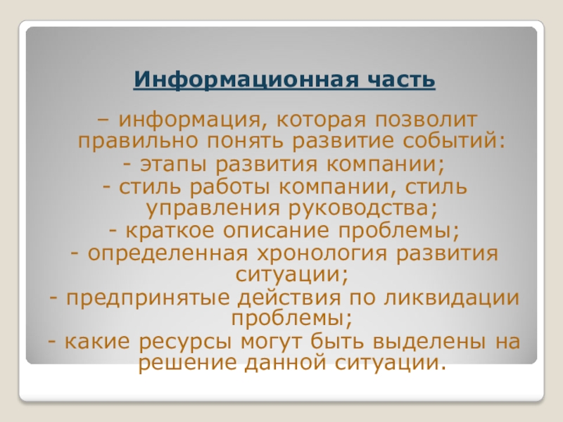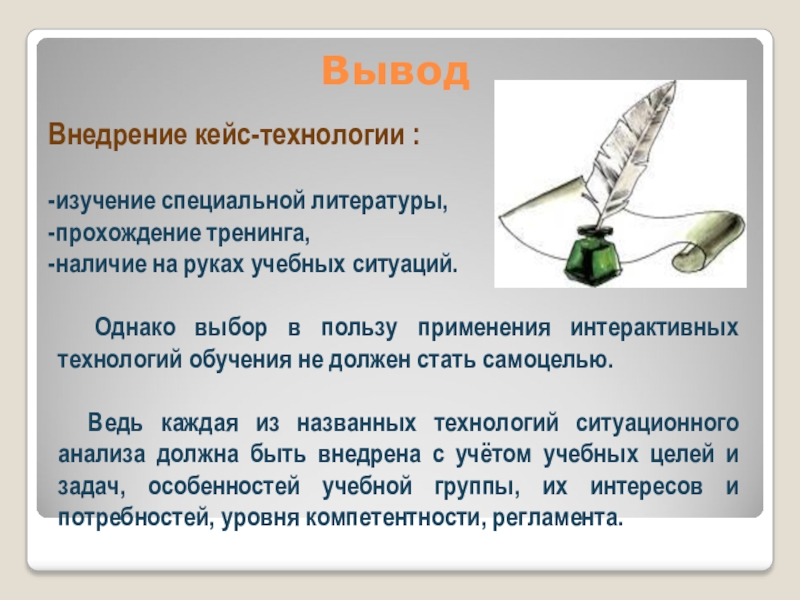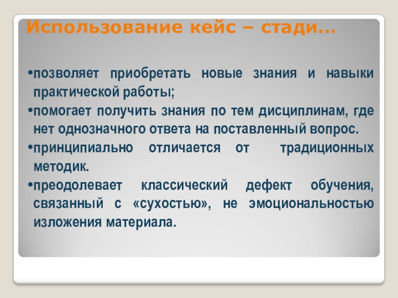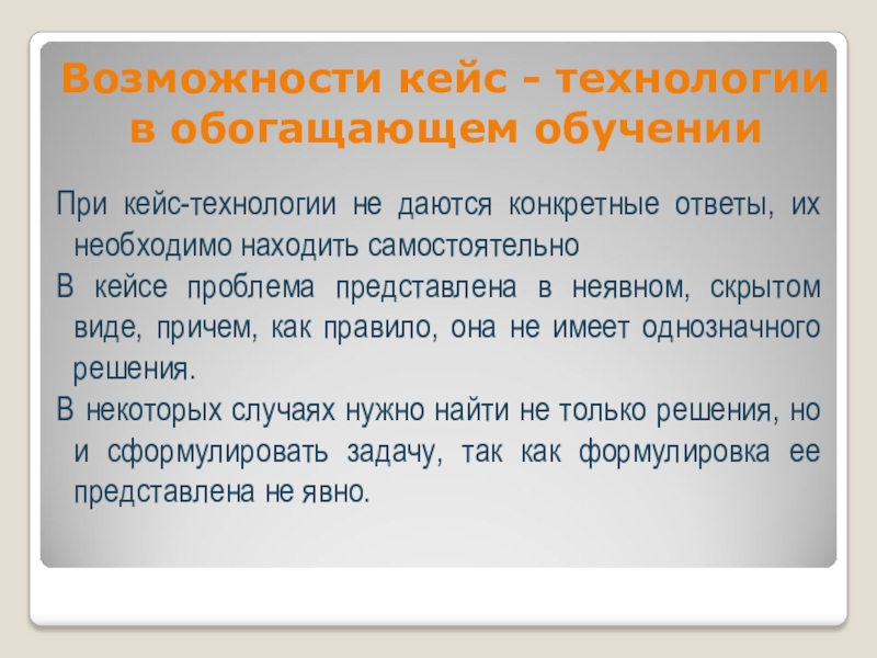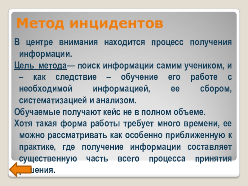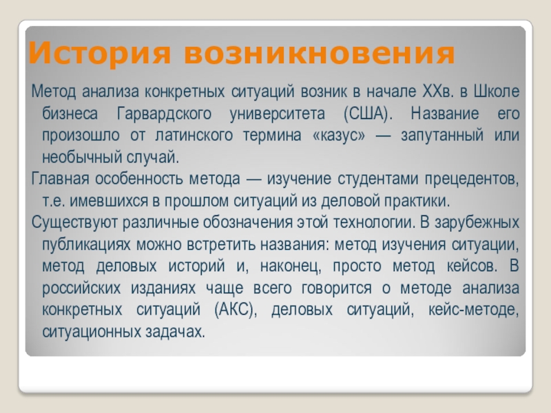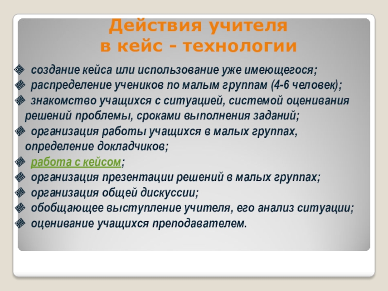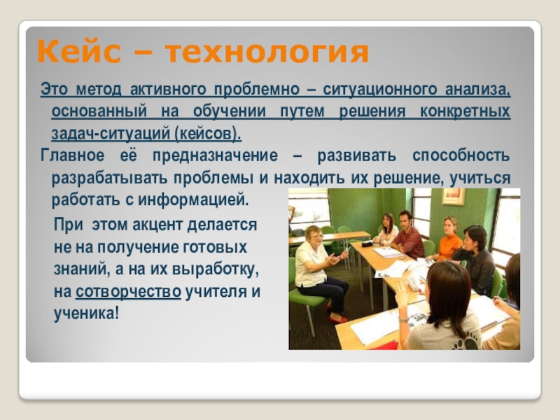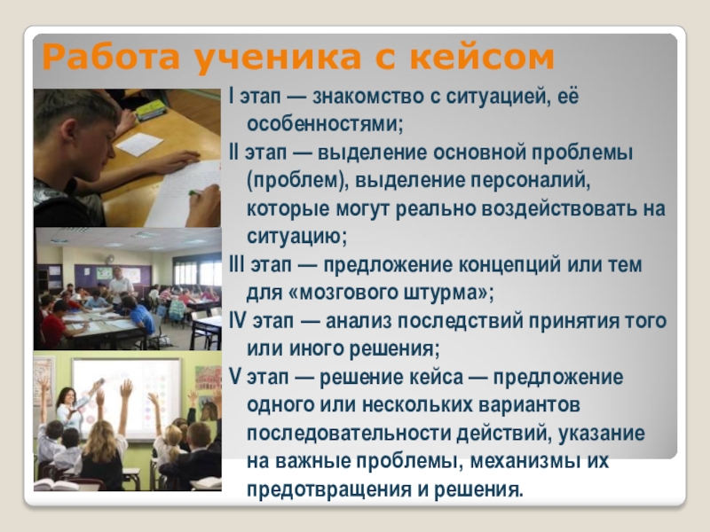 Основной упор в работе над случаем делается на анализ и синтез проблемы и на принятие решений.