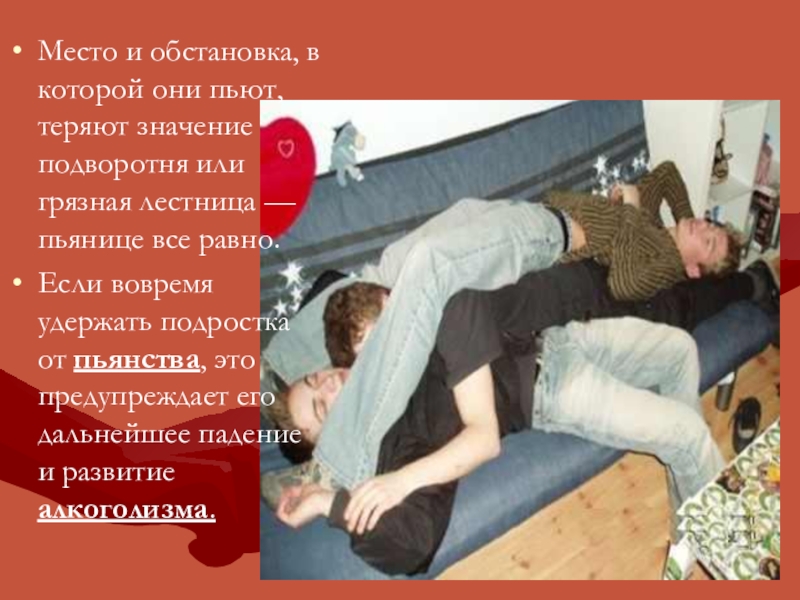 Если вовремя удержать подростка от пьянства, это предупреждает его дальнейшее падение и развитие алкоголизма.