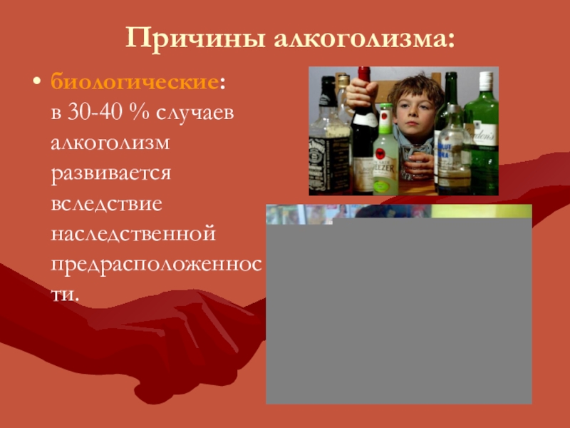 в 30-40 % случаев алкоголизм развивается вследствие наследственной предрасположенности.