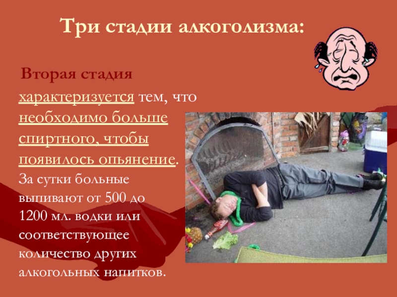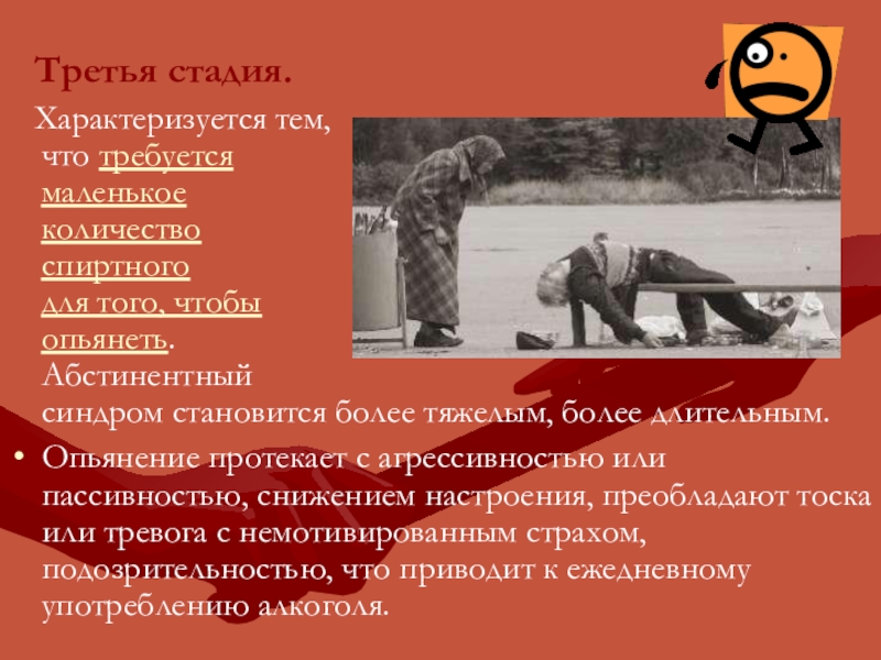 Слайд 5В трезвом состоянии вначале влечение к алкогольным напиткам не очень сильное,