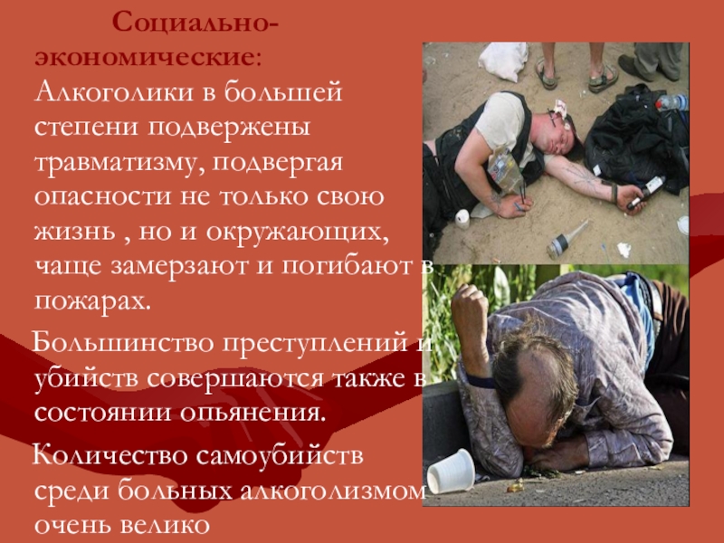 в большей степени подвержены травматизму, подвергая опасности не только свою жизнь , но и окружающих, чаще замерзают и погибают в пожарах.