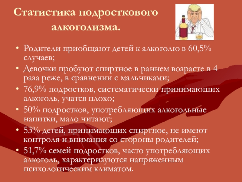 Родители приобщают детей к алкоголю в 60,5% случаев;