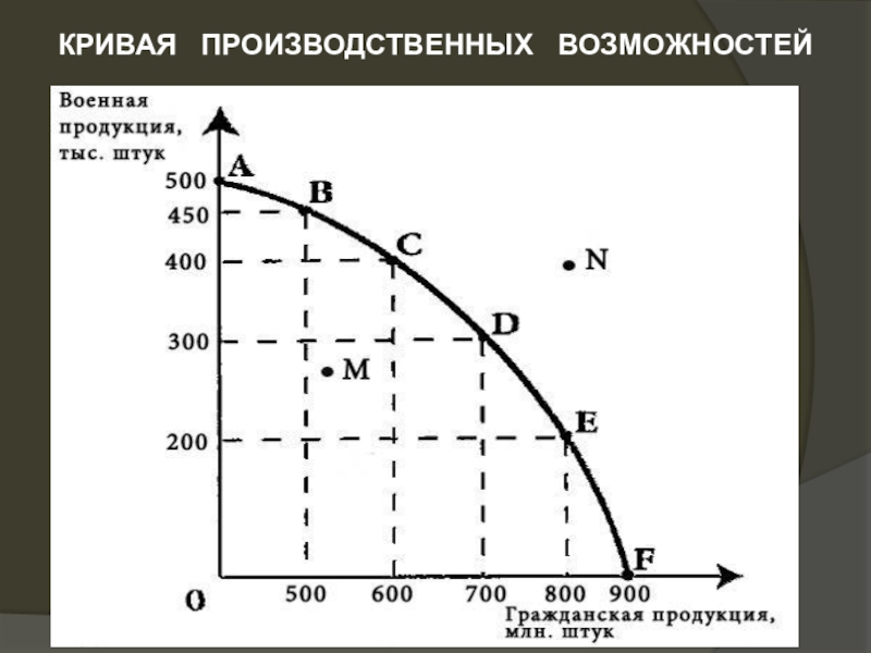это кривая, которая показывает различные комбинации максимальных объёмов производства нескольких (как правило, двух) товаров или услуг, которые могут быть созданы в условиях при полной занятости и использовании всех имеющихся в экономике ресурсов.