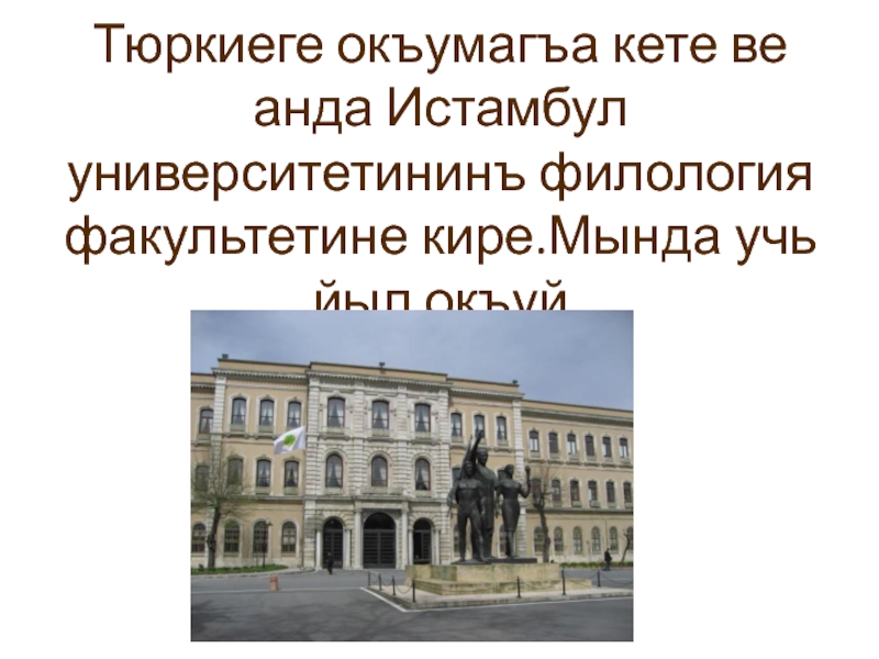 Слайд 9Тюркиеге окъумагъа кете ве анда Истамбул университетининъ филология факультетине кире.Мында учь