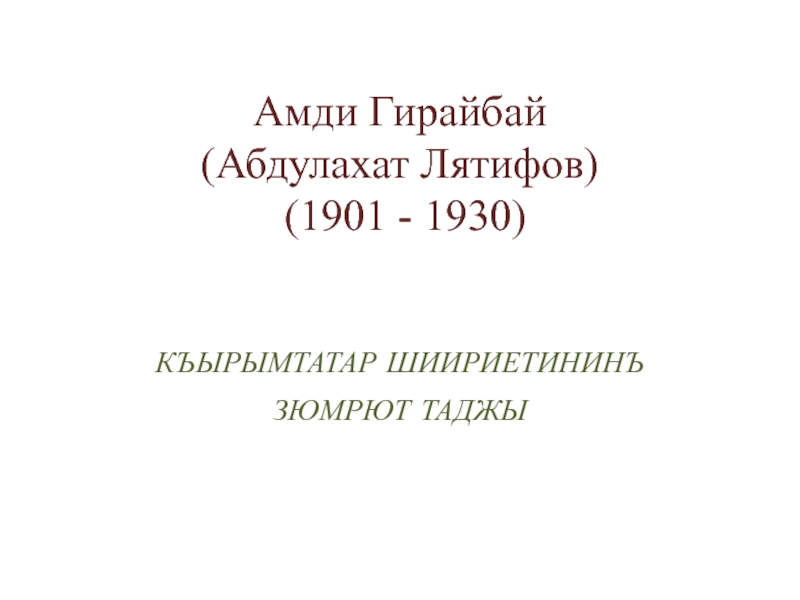 Слайд 1 Амди Гирайбай (Абдулахат Лятифов) (1901 - 1930)