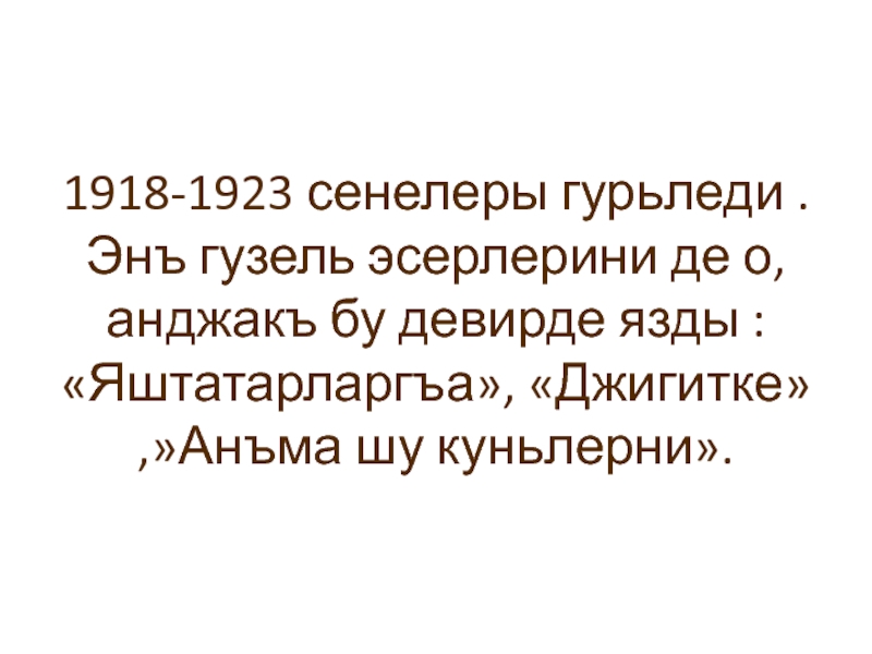 Слайд 71918-1923 сенелеры гурьледи .Энъ гузель эсерлерини де о,анджакъ бу девирде язды