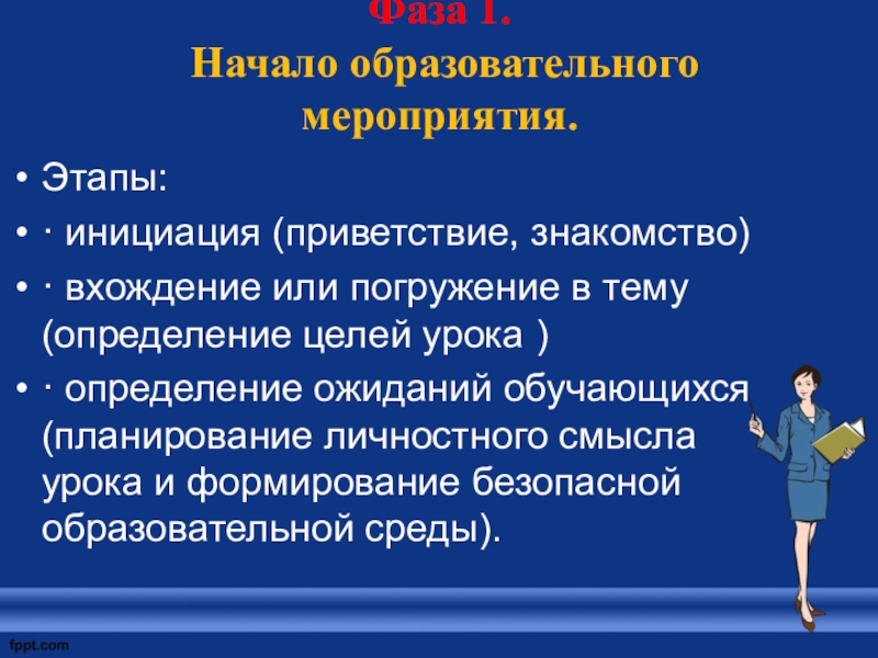 · определение ожиданий обучающихся (планирование личностного смысла урока и формирование безопасной образовательной среды).
