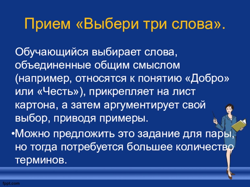 Можно предложить это задание для пары, но тогда потребуется большее количество терминов.