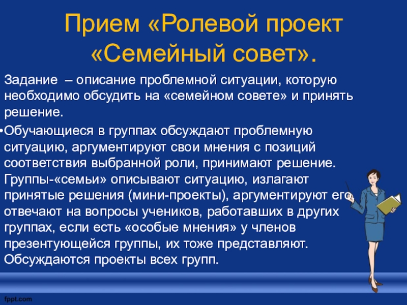 Слайд 17Прием «Ролевой проект «Семейный совет».