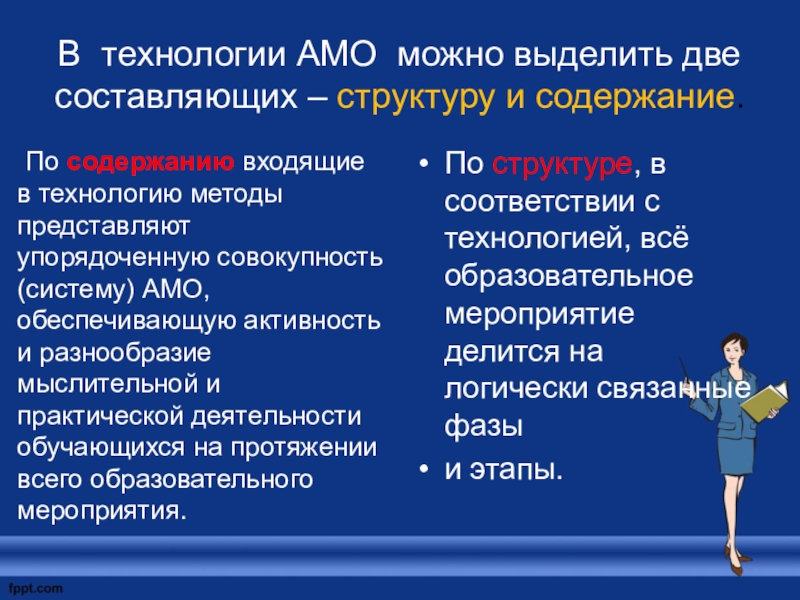 Слайд 6В технологии АМО можно выделить две составляющих – структуру и содержание.