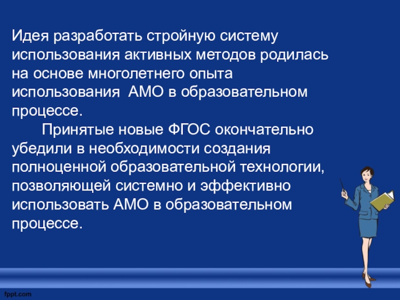 Слайд 4Идея разработать стройную систему использования активных методов родилась на основе многолетнего