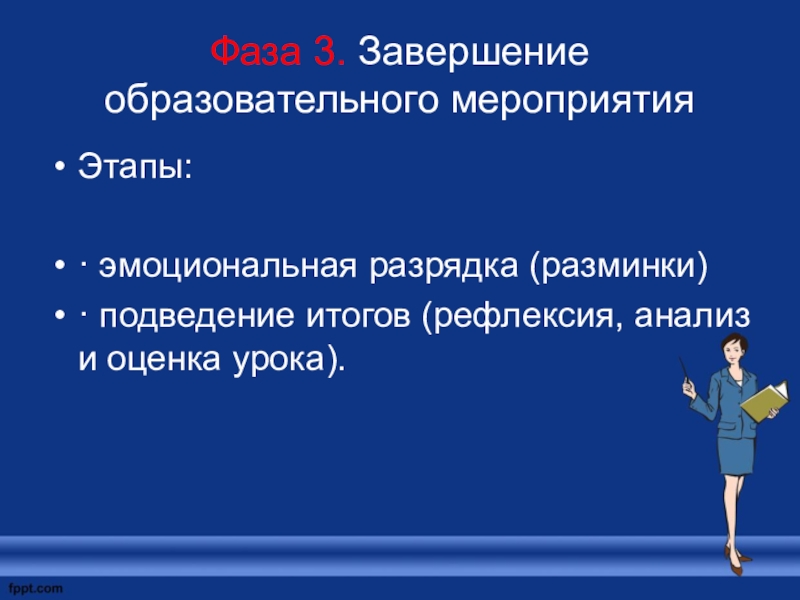 Слайд 9Фаза 3. Завершение образовательного мероприятия
