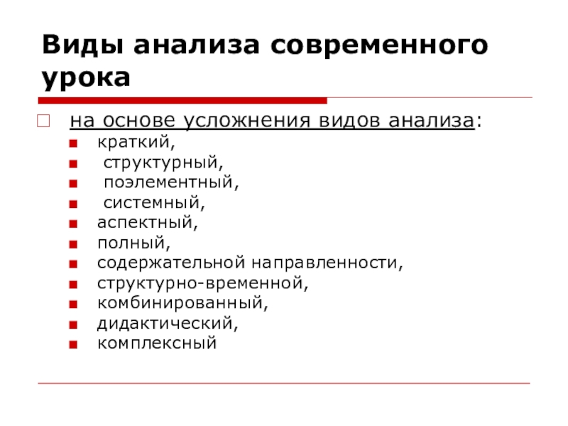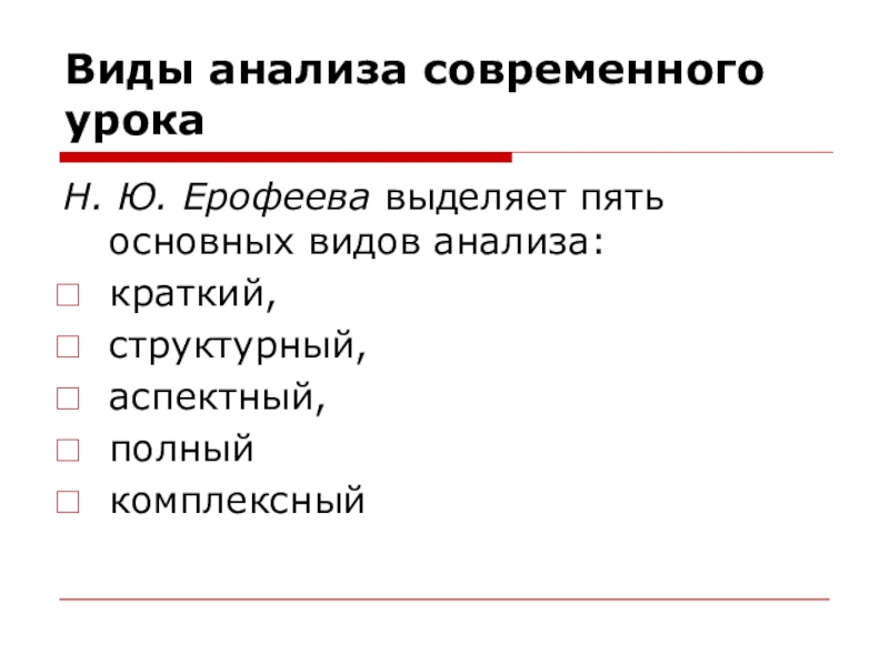 Н. Ю. Ерофеева выделяет пять основных видов анализа:
