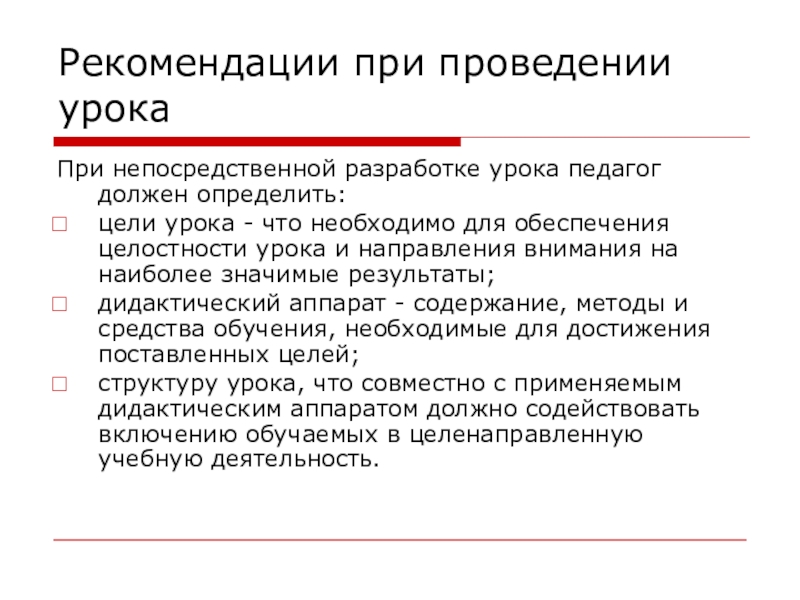 Анализ урока не может ограничиться изучением отдельных составляющих, их необходимо рассматривать в связи. Лишь через различные отношения внешние и внутренние составляющие урока, его элементы и подсистемы могут проявить свою сущность.