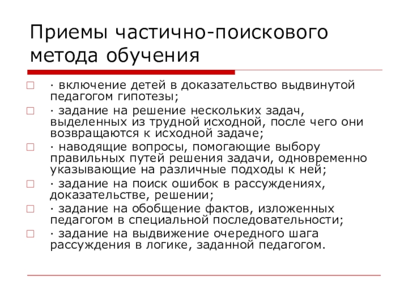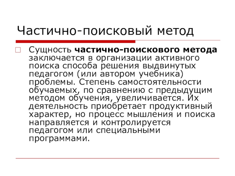 Сущность частично-поискового метода заключается в организации активного поиска способа решения