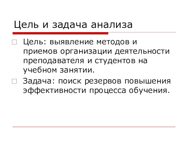 Анализ урока - это стимулятор педагогической производительности преподавателя, его прогресса.