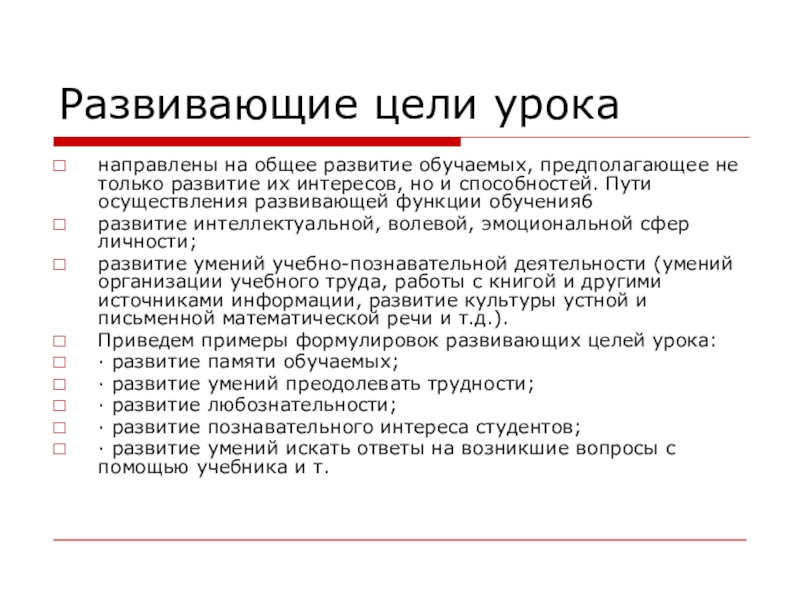 Направленность содержания учебного материала на развитие обучаемых, формирование мировоззрения студентов;
