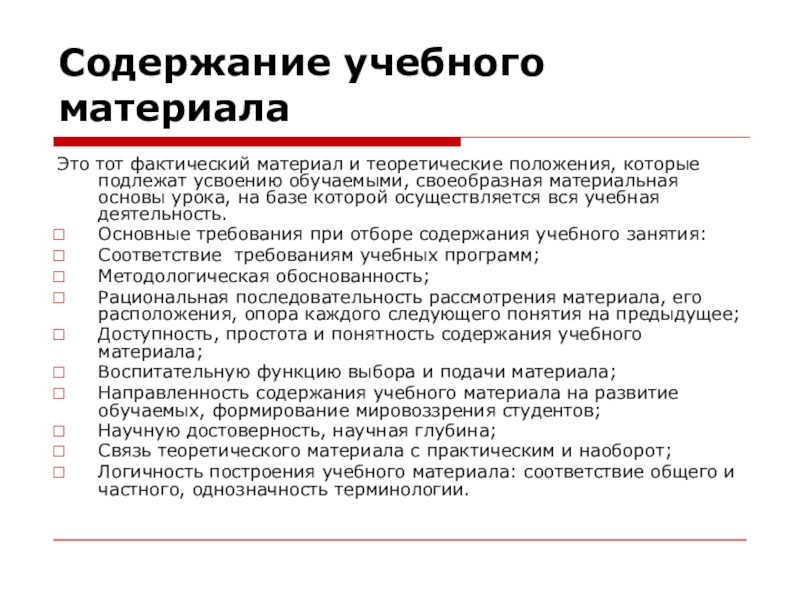 Логичность построения учебного материала: соответствие общего и частного, однозначность терминологии.