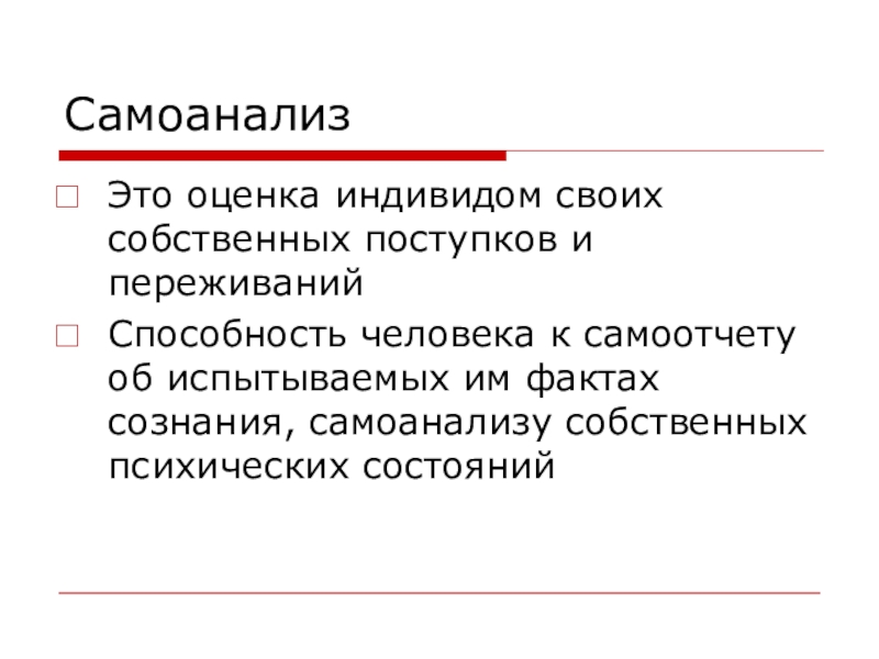 самоотчету об испытываемых им фактах сознания, самоанализу собственных психических состояний