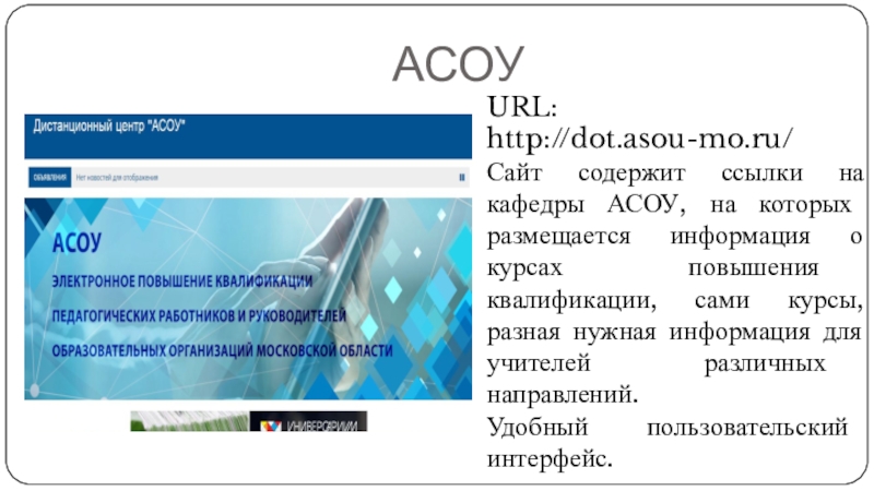 Сайт содержит ссылки на кафедры АСОУ, на которых размещается информация