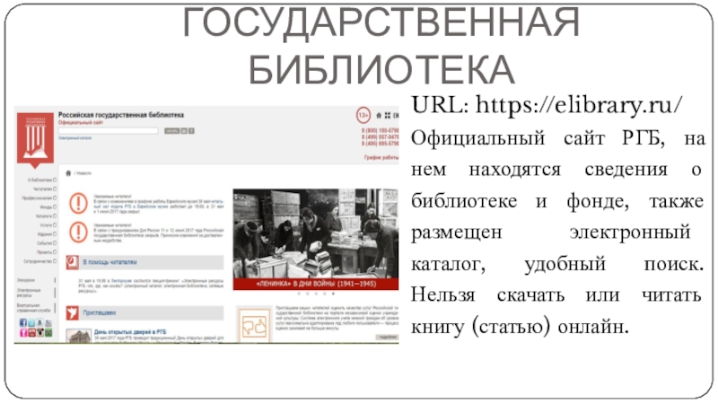 Слайд 14РОССИЙСКАЯ ГОСУДАРСТВЕННАЯ БИБЛИОТЕКА
