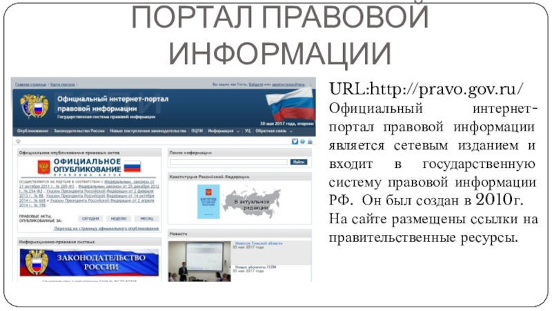 Слайд 6ОФИЦИАЛЬНЫЙ ИНТЕРНЕТ-ПОРТАЛ ПРАВОВОЙ ИНФОРМАЦИИ