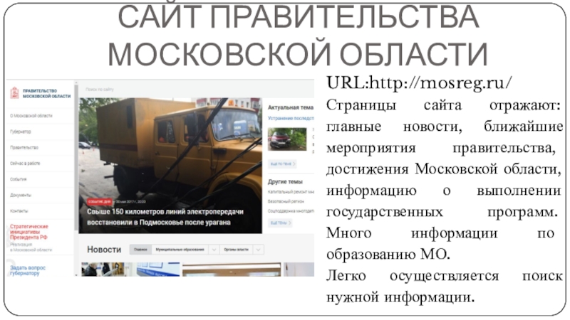 Слайд 7САЙТ ПРАВИТЕЛЬСТВА МОСКОВСКОЙ ОБЛАСТИ
