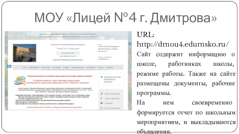Слайд 11МОУ «Лицей №4 г. Дмитрова»