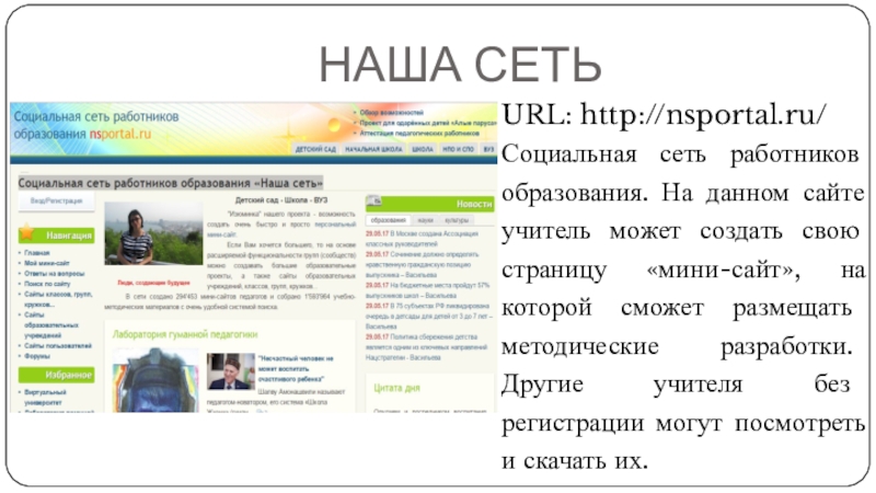 создать свою страницу «мини-сайт», на которой сможет размещать методические разработки. Другие учителя без регистрации могут посмотреть и скачать их.