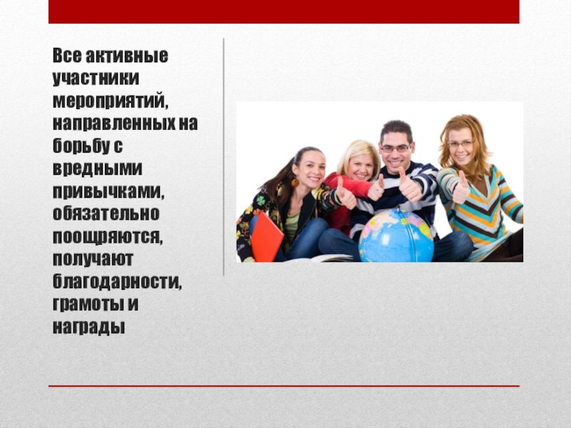 Слайд 18Все активные участники мероприятий, направленных на борьбу с вредными привычками, обязательно