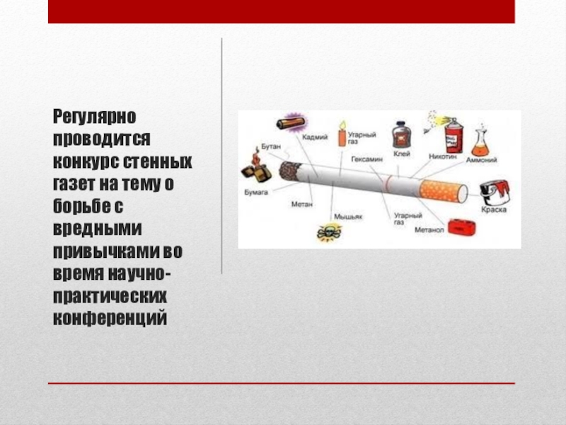 Слайд 13Регулярно проводится конкурс стенных газет на тему о борьбе с вредными