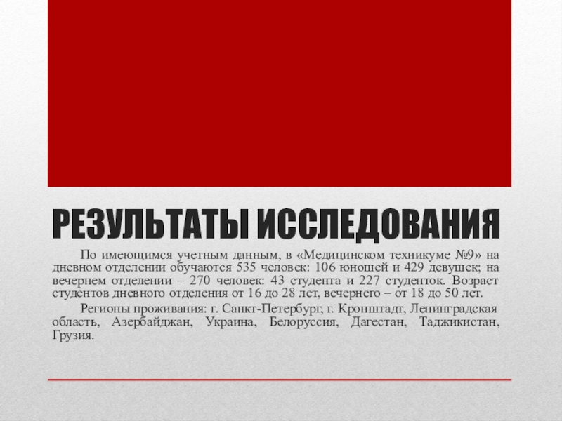 По имеющимся учетным данным, в «Медицинском техникуме №9» на дневном