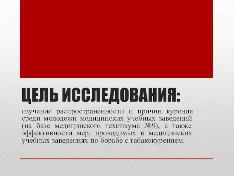 (на базе медицинского техникума №9), а также эффективности мер, проводимых в медицинских учебных заведениях по борьбе с табакокурением.