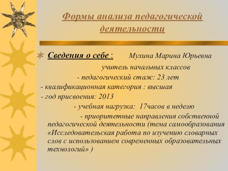 - заполнить такие разделы портфолио, как : “Учебно-методическая работа”, “Научно-методическая работа”, “Внеурочная деятельность по предмету” и др.