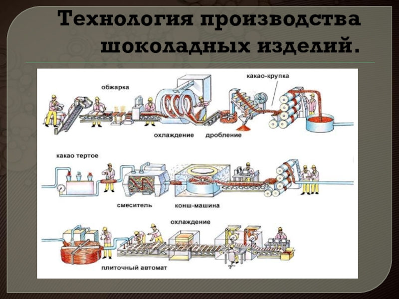 Слайд 10  Технология производства шоколадных изделий.