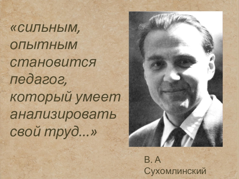 Слайд 2«сильным, опытным становится педагог, который умеет анализировать свой труд...»