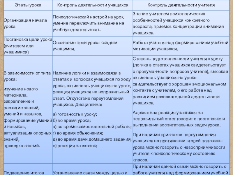 с позиций деятельности учителя и учеников,