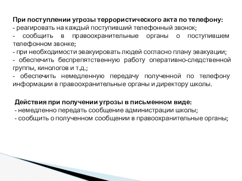 Действия при получении угрозы в письменном виде: