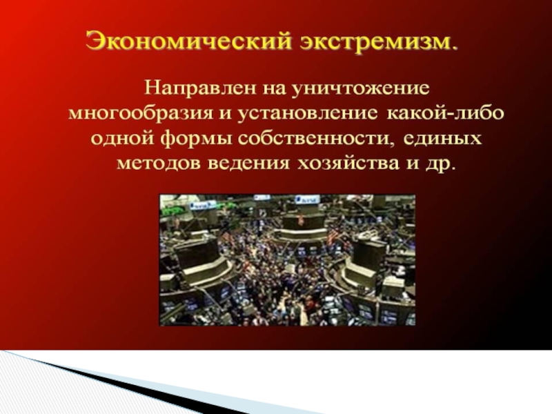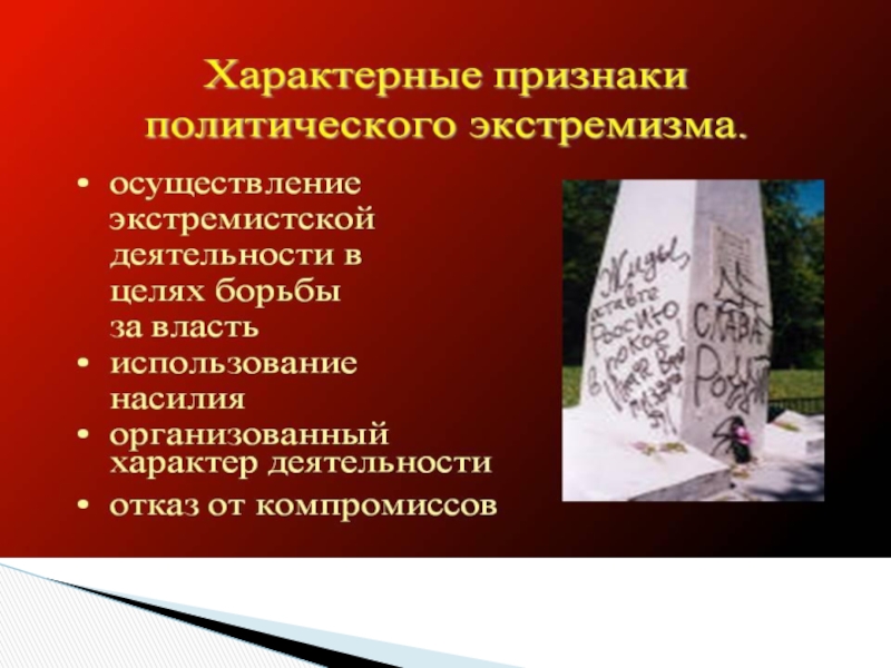 Идеологически заданный, социальный — преследует цель коренного или частичного изменения экономической или политической системы страны, привлечения внимания общества к какой-либо острой проблеме.