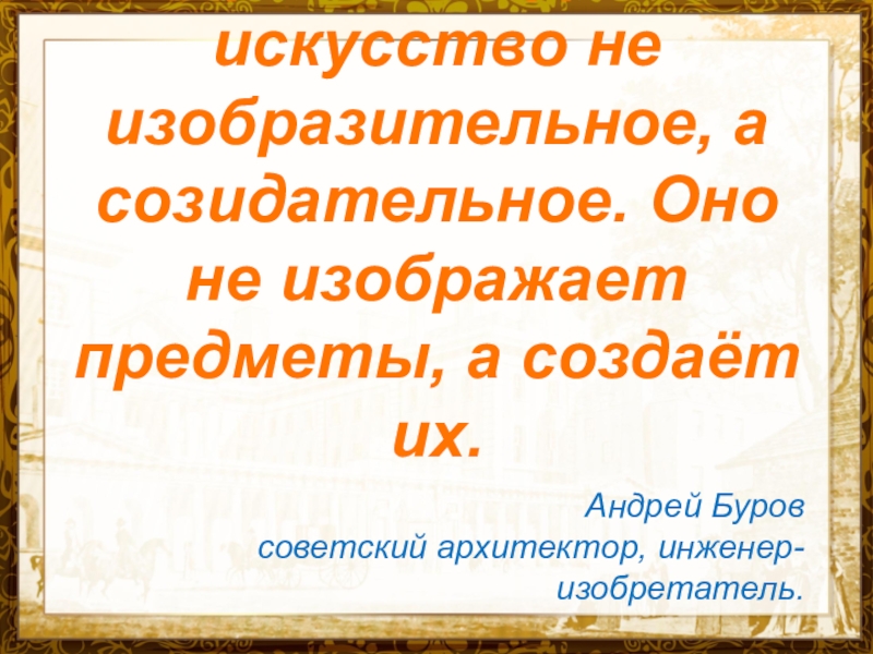АРХИТЕКТУРА— ЭТО СТРОИТЕЛЬНОЕ ИСКУССТВО,ВИД ТВОРЧЕСТВА, ФОРМИРУЮЩЕГО ДЕЙСТВИТЕЛЬНОСТЬ ПО ЗАКОНАМ КРАСОТЫ.