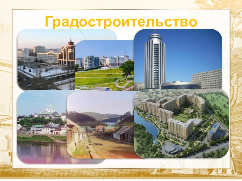 Градостроительство, охватывающее строительство новых городов и поселков и реконструкцию старых городских районов.