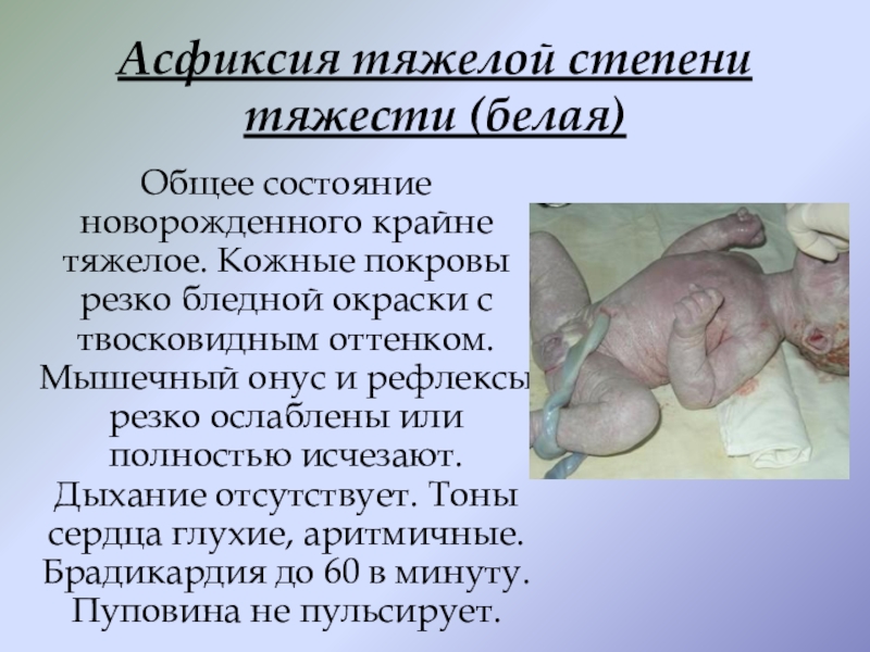 Слайд 7Асфиксия тяжелой степени тяжести (белая)