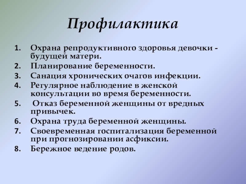 Охрана репродуктивного здоровья девочки - будущей матери.