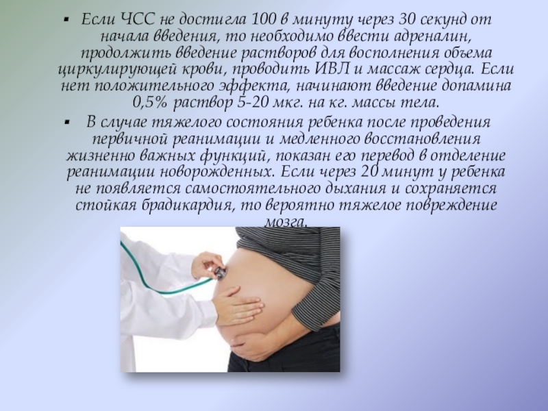Слайд 17Если ЧСС не достигла 100 в минуту через 30 секунд от